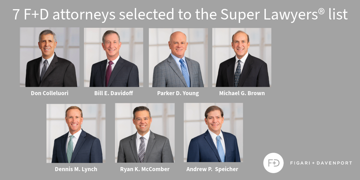 Congratulations to Don Colleluori, Bill Davidoff, Parker Young, Mike Brown, Dennis Lynch, Ryan McComber, and Drew Speicher for their selection to the 2025 Super Lawyers list! Each year, no more than five percent of the lawyers in the state are selected by the research team at Super Lawyers to receive this honor. Super Lawyers, a Thomson Reuters business, is a rating service of outstanding lawyers from more than 70 practice areas who have attained a high degree of peer recognition and professional achievement. The annual selections are made using a patented multiphase process that includes a statewide survey of lawyers, an independent research evaluation of candidates and peer reviews by practice area. The result is a credible, comprehensive and diverse listing of exceptional attorneys. The Super Lawyers lists are published nationwide in Super Lawyers Magazines and in leading city and regional magazines and newspapers across the country. Super Lawyers Magazines also feature editorial profiles of attorneys who embody excellence in the practice of law. For more information about Super Lawyers, visit SuperLawyers.com.